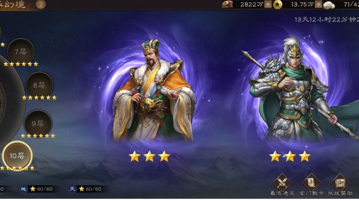 #新三国志曹操传创作者激励 本期的南华幻境难度比之前大了不少...前面有很多关需要你有高数值的武将才能完美过。而第十关则是机制关卡,尤其是10-1,不需要你有多高的培养强度,只要用对应的武将就好!诸葛赵云一定要站在队伍的左上和左下角。敌军回合只有一个弩兵打一下赵云被闪避,无伤!本关如果实在没有诸葛神兵,也可以用郭嘉配合刘晔等减速哦。甄姬也可以加护盾保一下