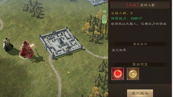 #新三国志曹操传创作者激励2026 #新三国志曹操传攻略 又到了游历小游戏环节,本次游历为庞统之影,敌方四个庞统血量有200%加成。庞统死亡后会在两回合后复活,所以要用群攻技能武将为主攻,在两回合内斩杀四个庞统。上阵武将:曹操、貂蝉、甄姬、周瑜、郭嘉、许褚。主攻武将周瑜和郭嘉。回合开始曹操开辅助技能六龙乘风为大家加伤害增益,许褚开辅助技能,周瑜开技能烈火破军攻击上方两个庞统,貂蝉开辅助技能