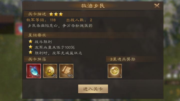 #新三国志曹操传创作者激励2026 #新三国志曹操传攻略 本关通关要求,第三回合初友军血量100%,星级条件为友军血量未低于100%,胜利时友军无减益效果。三星通关详解:本关需要打两次,第一次上阵武将选甄姬。回合开始华佗前进开技能为其中一个友军解除减益,甄姬前进开辅助技能为友军加盾,第二回合华佗开技能为友军补血(因为这时华佗还没有技能点数,没有点亮技能所以开不了怒技),甄姬开怒技为友军加盾,