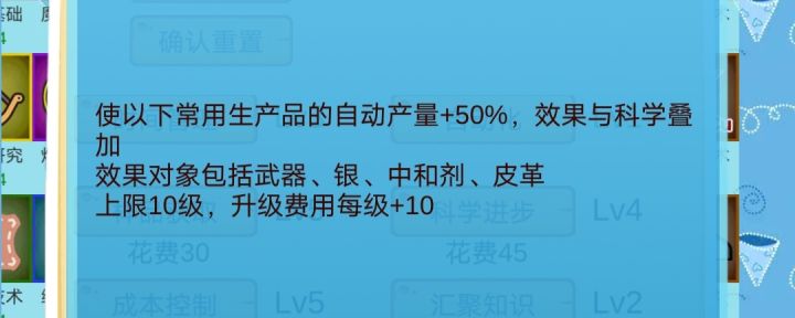 1.20版本新增时之沙科技:加工认知1级花费15真理,每级递增10-主要作用-前中期替代普通科技对后期报告产量没有帮助-适用情况-不缺乏工具,且不想停魔杖自动蓝色药剂足够,需要更快的雕金启动速度药剂师升级时卡手解锁法袍自动后皮革短缺(转生了一次回来补充:法袍这个时候科学有巨大缺口,点两级替代制革技术还是有用的)优先度:可以顺手点两级下面是相关解释武器:如果不缺工具,可以