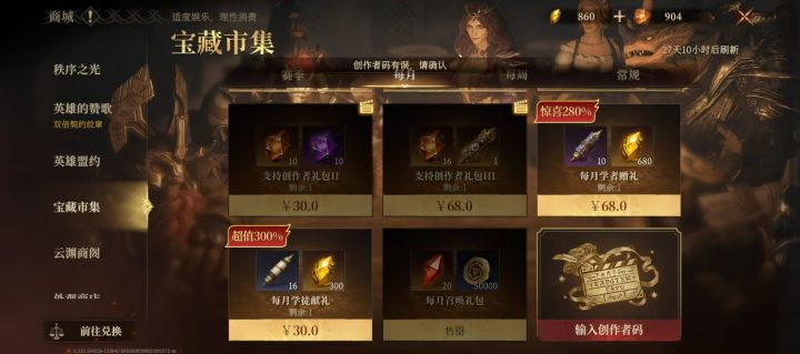 输入创作者码168888,可以免费获取一抽!