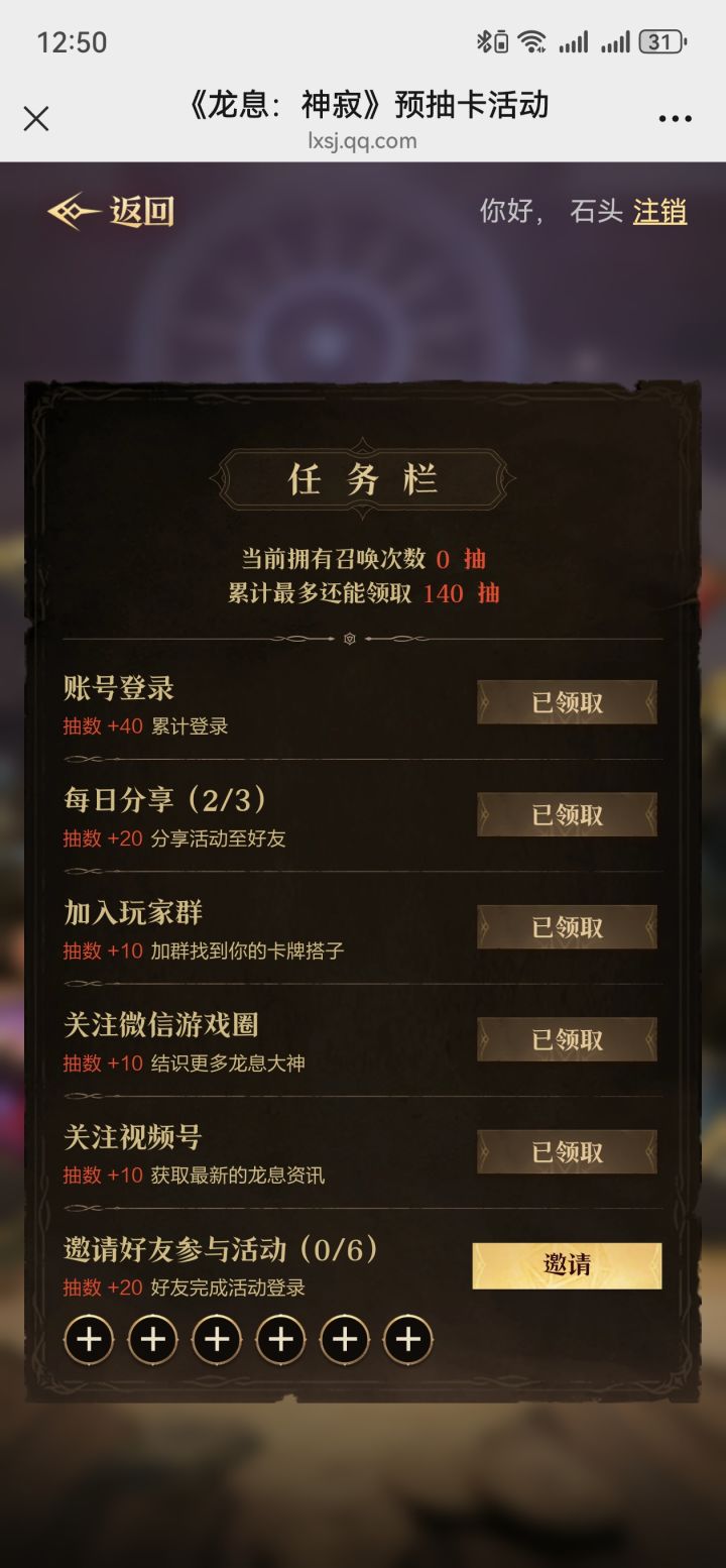 这个邀请好友助力为什么我邀请了没用啊,是不是现在邀请了不算了。那我岂不是只有160抽#龙息神寂