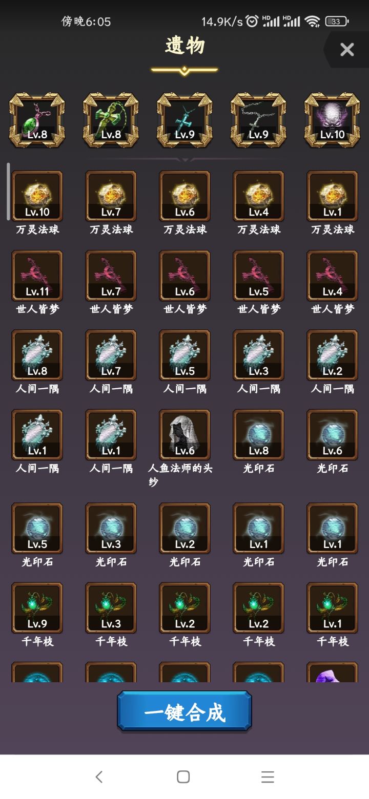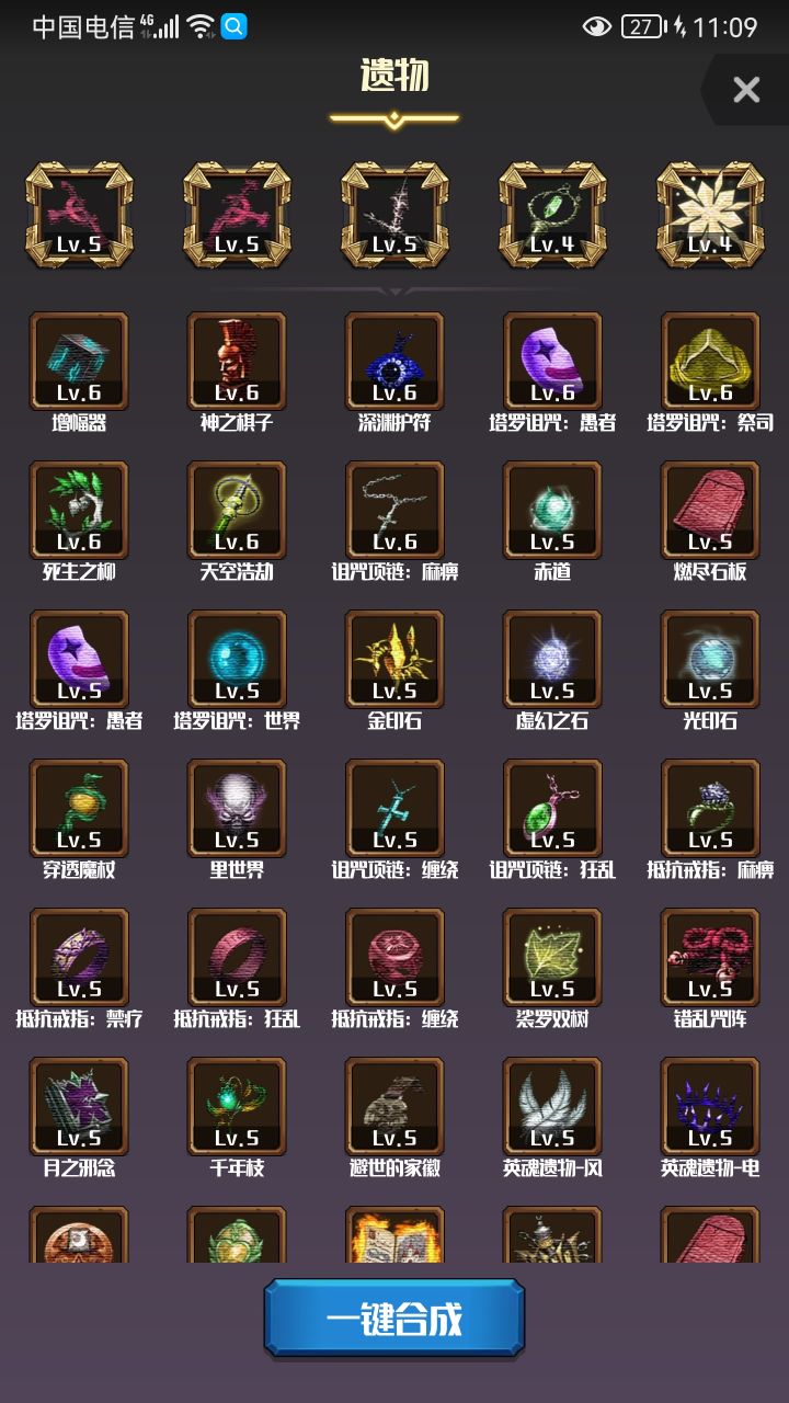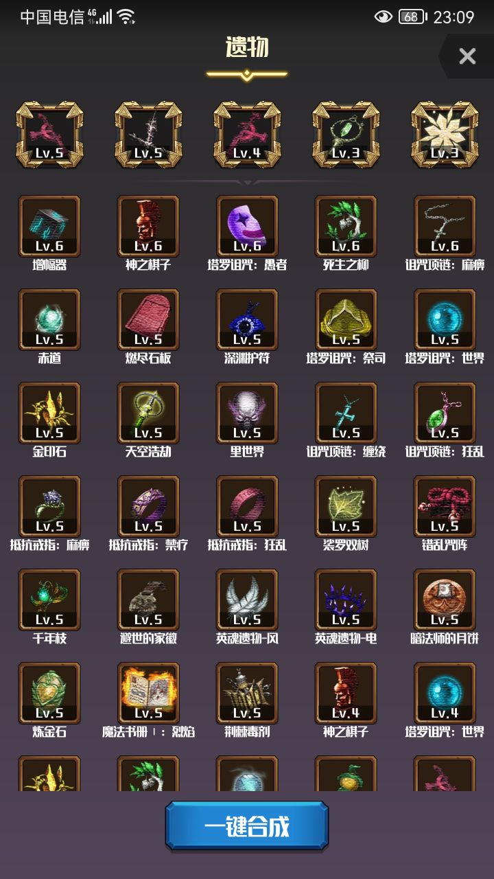 遗物:三格,石像鬼、灵芝、木系树枝。四格+延控项链。五格+随意