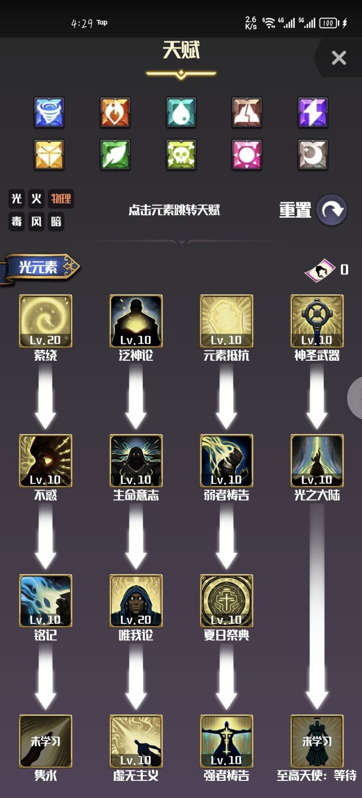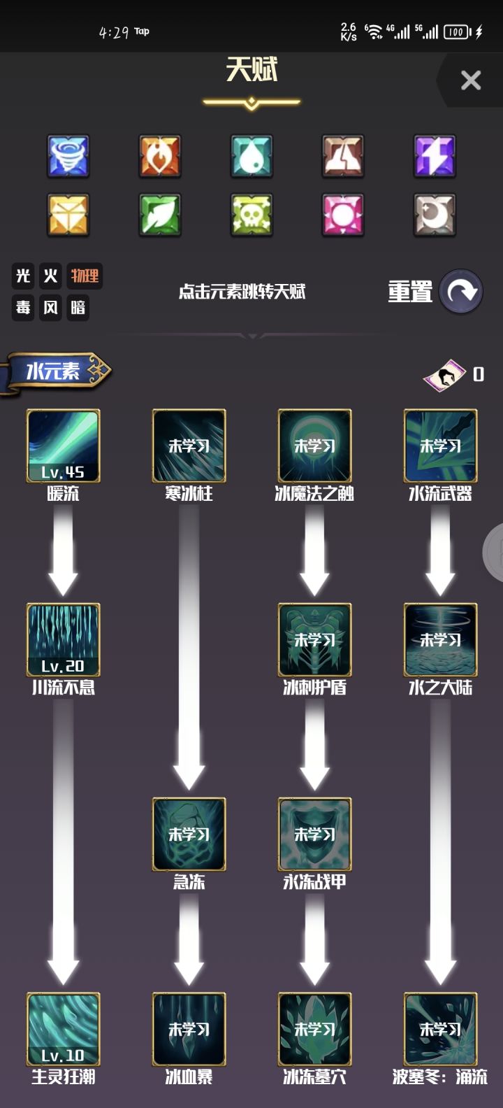 天赋:光,水,木,土刺