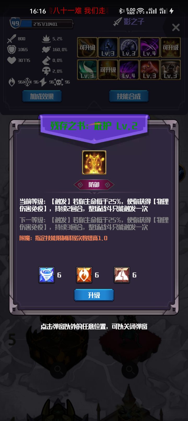 技能:如图,没属性时附魔不bt时,不建议残阳。可换驱散减益技能,免疫控制技能,残血保命技能。