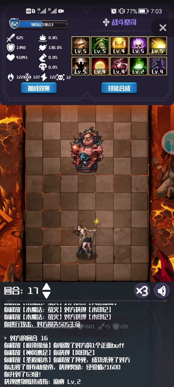 防御方式 石魔护身符+圣盾防御连锁+水系治疗连锁+高级缠绕+高级冰冻