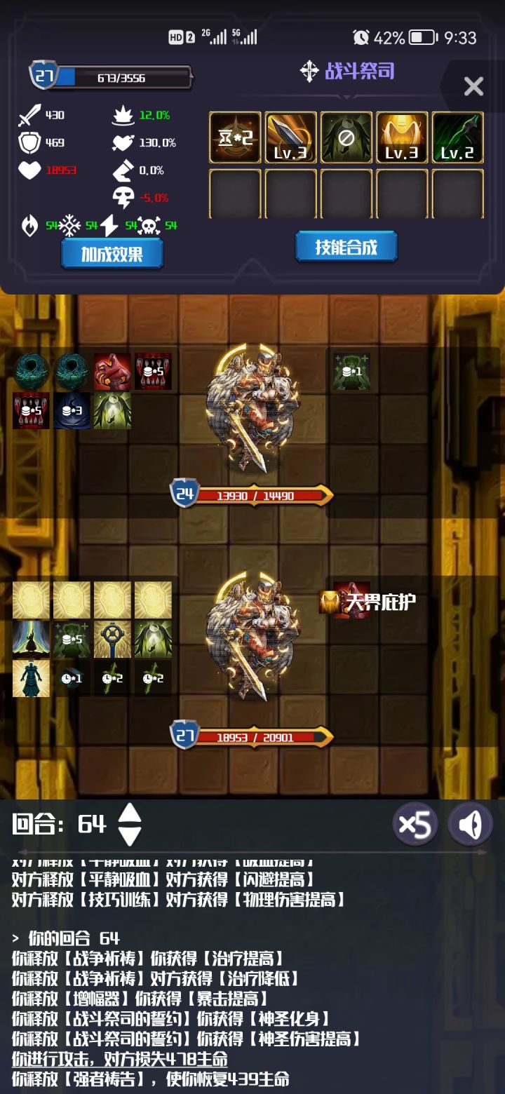 没看懂,咋回事,输出还是负的?全免伤也该为零啊。然后技能吸血两次,一次免死,一次结束了,吸血回复-20万。。。今天重新玩了下,下三图。前三回合金刚禁卫+王座减伤105%,然后我方输出没闪避的就是负值,第四回合输出就转正了。有点奇怪的是输出下方的普通和全伤护盾抵挡,昨天的抵挡为0,今天的看到的都抵挡清0了