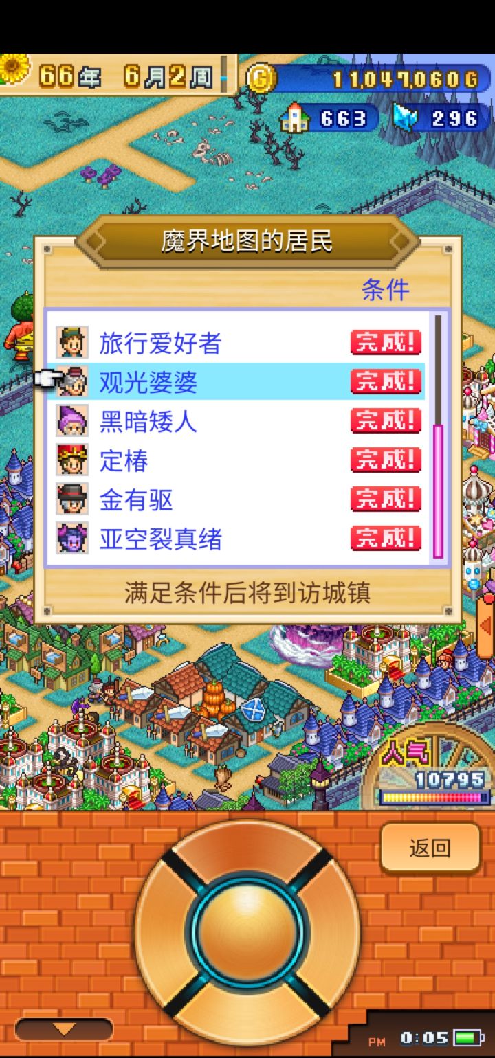 有几个居民达成条件很难,但达成条件时基本都是一同完成的,这就导致了送交通工具的人直接略过热气球,把飞艇先给了,最后只剩一个需要交通工具的观光婆婆不能解锁,是回去之前的地图拆了补过来才达成条件的。最后终于全条件达成了,云存档上传游戏卸载。