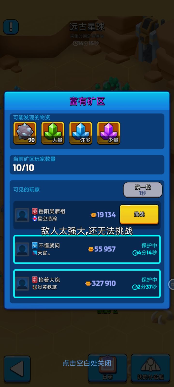 挖矿这个新玩意,bug多的要命,刚看到一个所谓2000多战力的,我30万不能打,根据公会名字去找这个号,又找不到这个名字