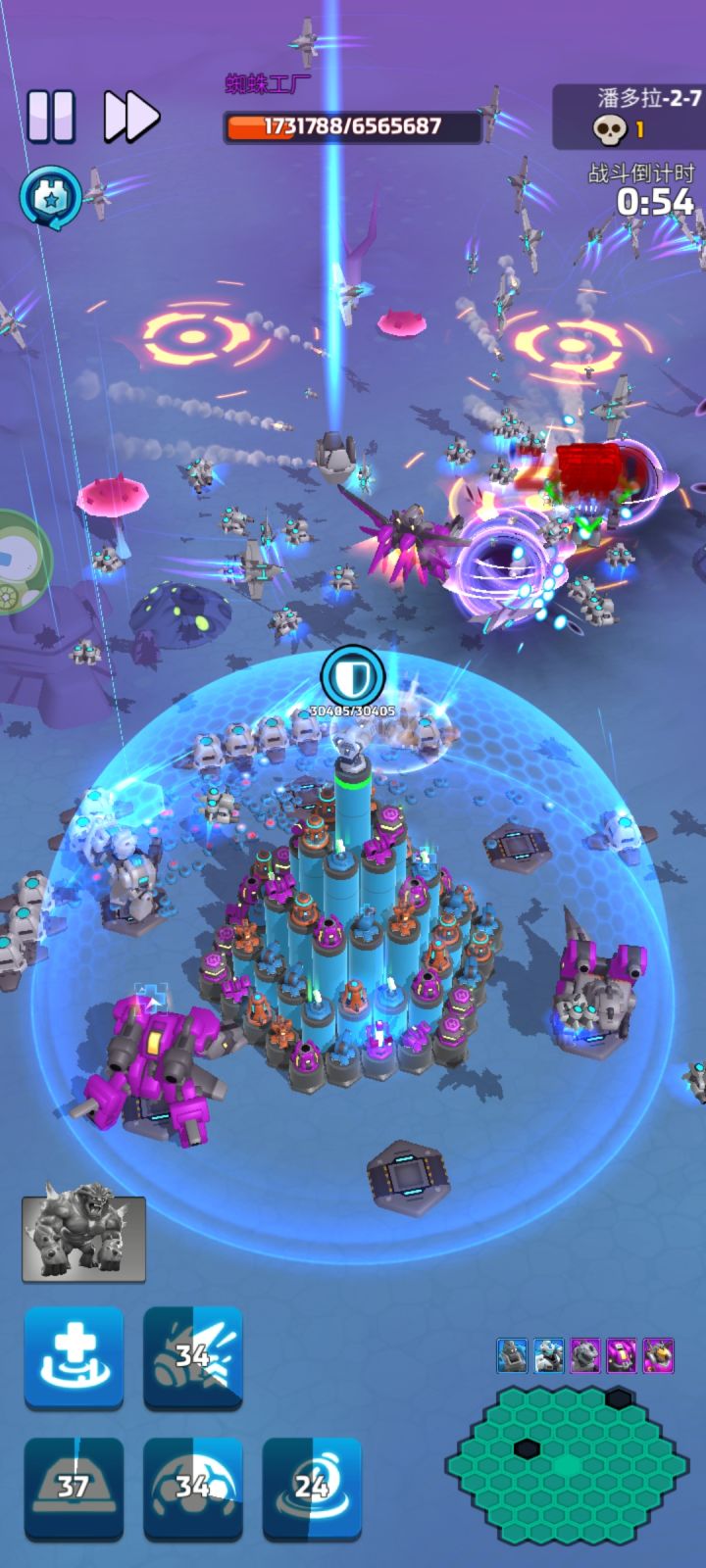 这个蜘蛛工厂是不是设置的太远了,很多炮台打不到