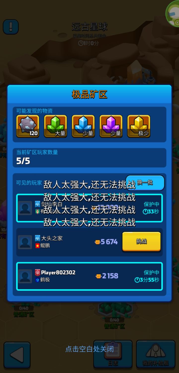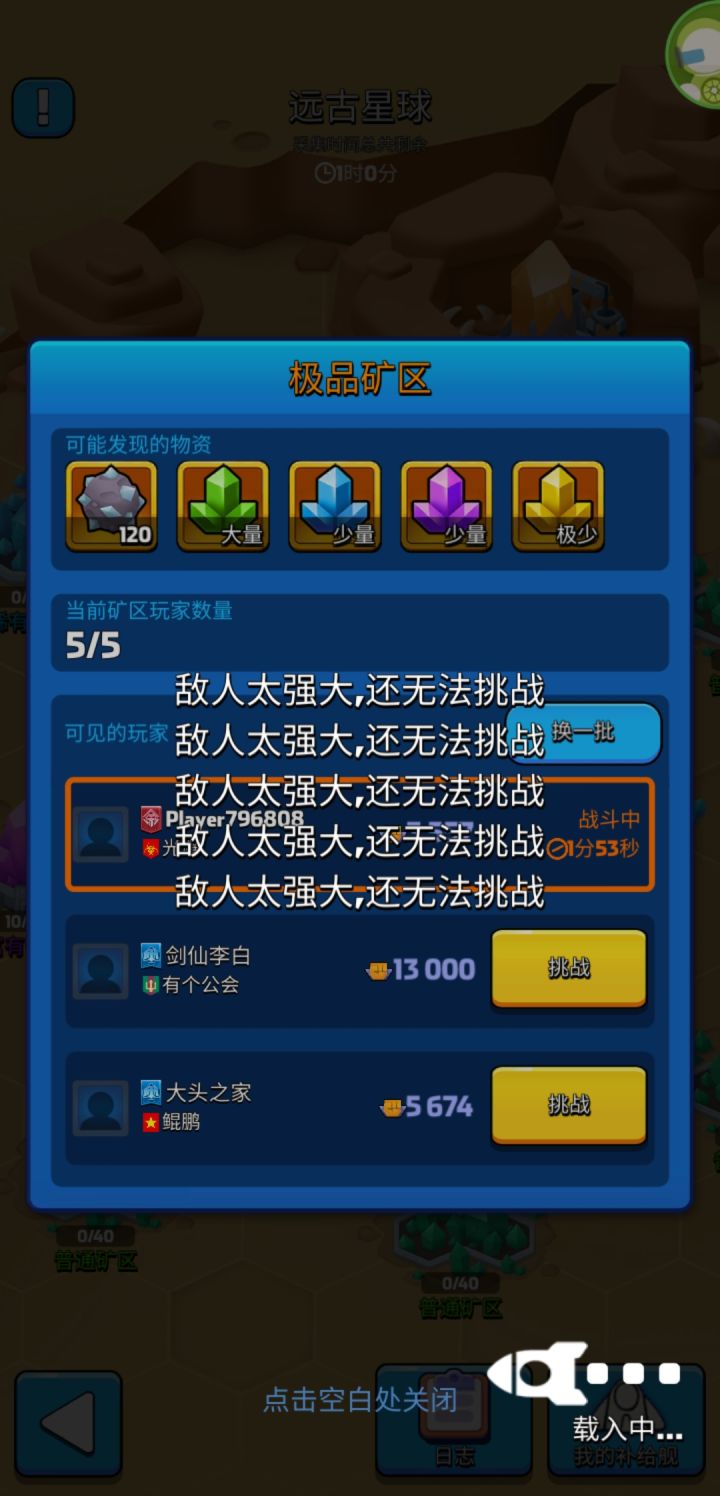 远古每天都和来了大姨妈一样,总有几个小时打对面完全不掉血,现在矿区挑战都出问题,虽然号不大10来万战力,但也不能连1万的都不能挑战吧