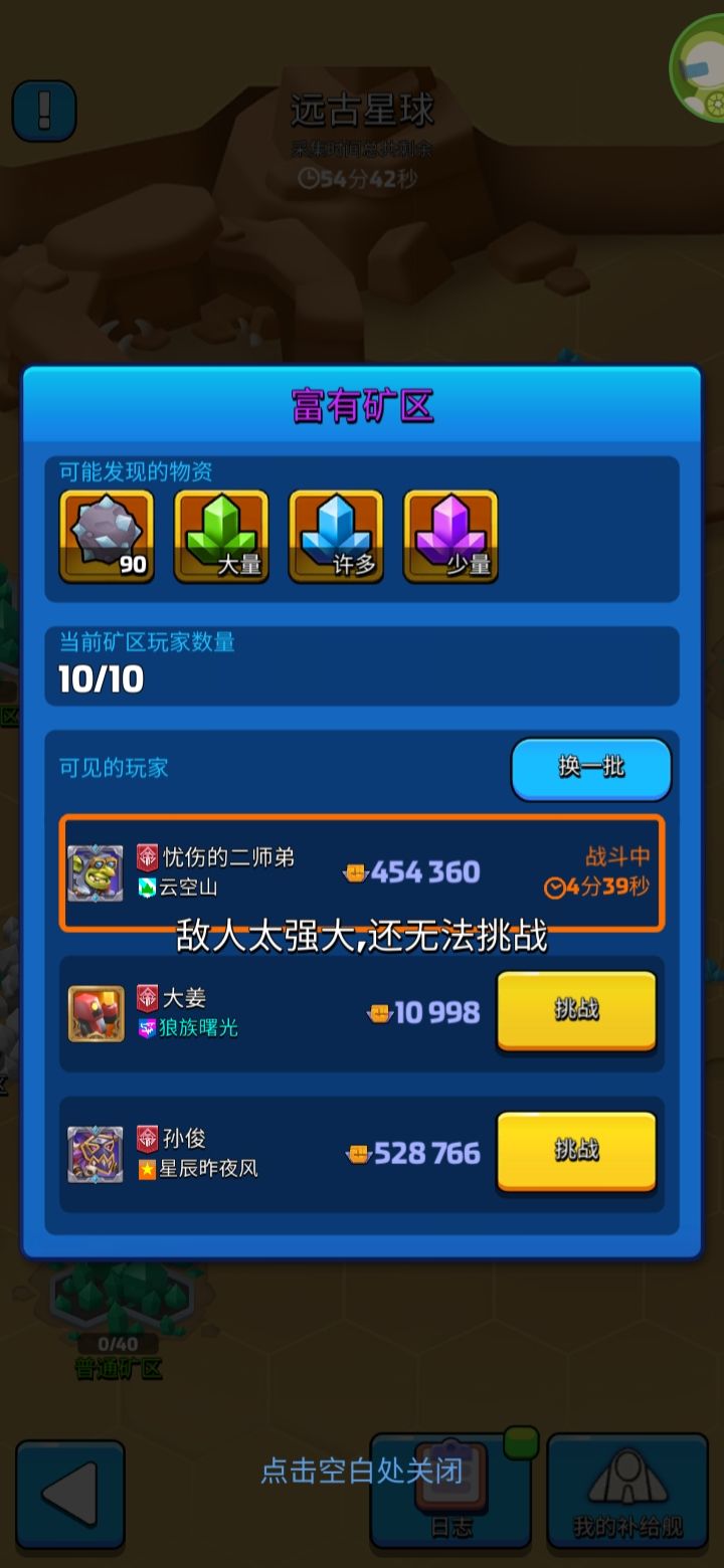 我一个两万战力打不到一万的给我说敌人太强大。。。换成和他们一样战力的也还提示敌人太强大。。。望修复。太闹心了。