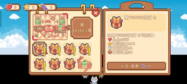 签到了十万个周,终于出新的签到家具了呜呜X﹏X,可爱村真的,我哭死这个bug谁来管管呢,我的存档还能回来吗...