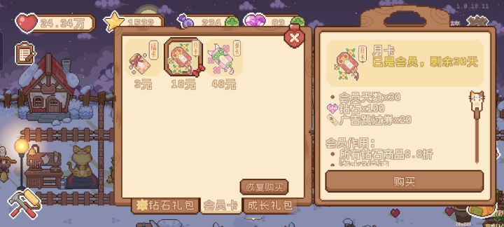 今天刚充的月卡钻石100,莫名其妙变成83了,我不记得我买了什么钻石商品,而且商店好像也没有17钻石组合的东西吧,我找了半天没找到。。游戏反馈也提交了还没被处理。。#我的可爱村