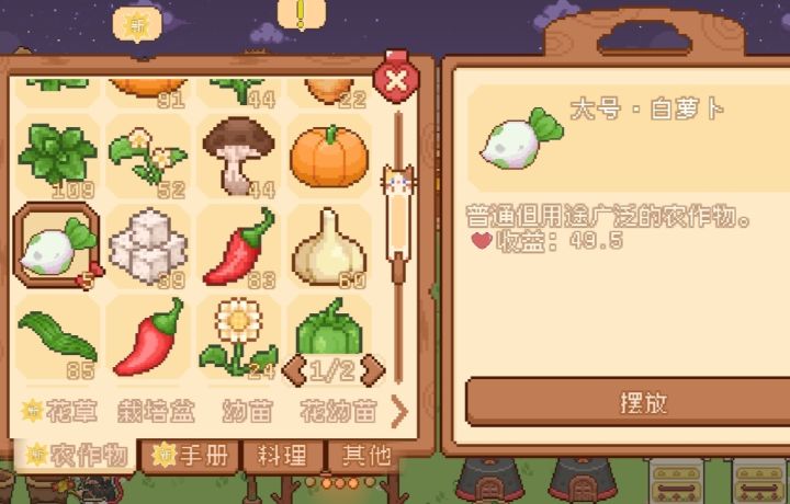 生产得到的大号、黄金农作物 ,可以试着开发点更多的玩法,比如做料理的时候可以用大号农作物烹饪出大号的料理,同样可以把黄金农作物烹饪成黄金料理。也可以增加一些玩法,比如送料理给对应的村民,增加好感度什么的,达到某个好感度可以对应解锁一些角色故事、角色同款装扮……当然 可爱村这个游戏真的很好很良心,希望制作组可以一直坚持下去🥰🥰