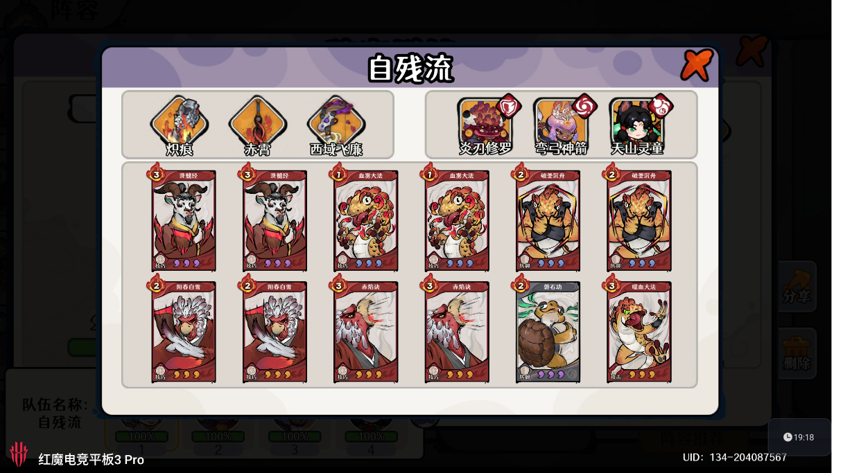剑魔阵容:开荒无敌,日常刷图便捷,蓬莱攻擂等活动操作便利武侠:剑魔+任意豪侠(推荐狮子)+任意悬壶(推荐兔子)(剑魔一拖二带的武侠卡不可为技巧卡)神兵:赤霄+祝融+擎天(推荐3星)毒流:上限极高,无尽表现优异,蓬莱水系大哥蛤蟆(推荐3命)+小紫(推荐4命)+棋圣神兵:赤霄+祝融+沧月自残:解放双手,无尽自动省时省力,蓬莱火系大哥炎刀(推荐3命)+灵童(推荐4命)+弯弓(推荐4命)神