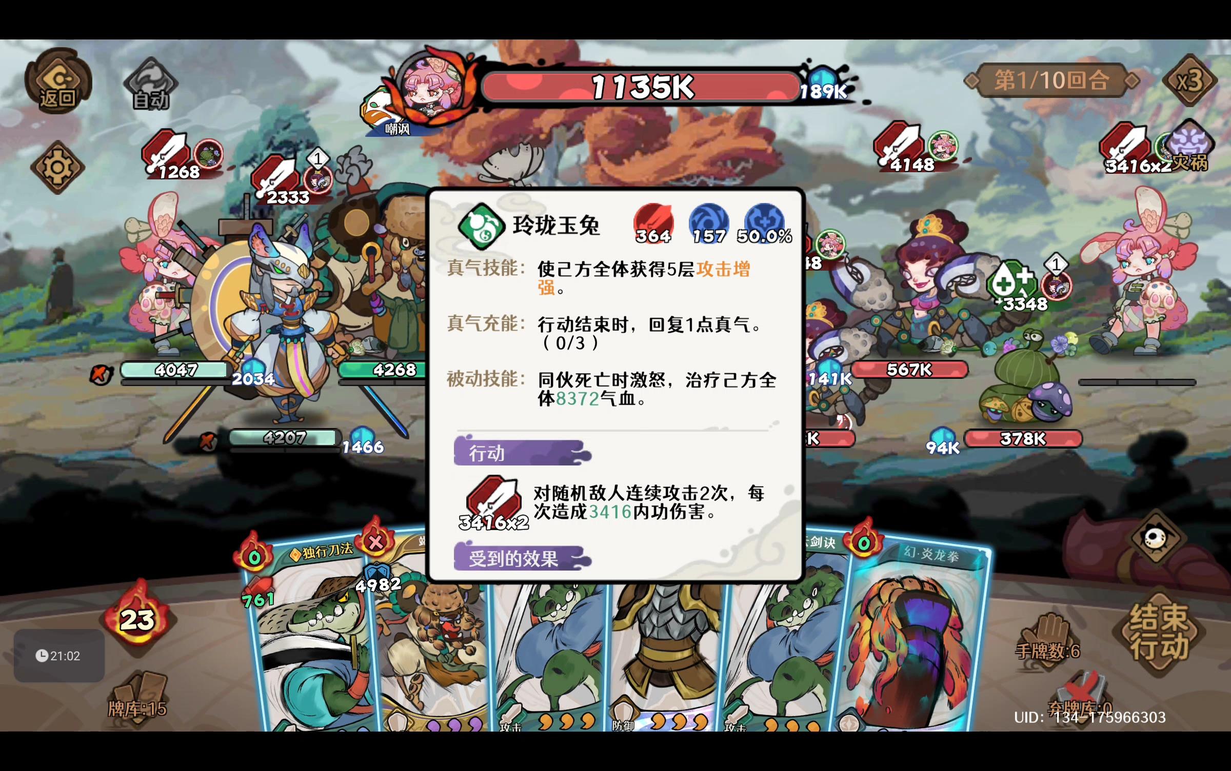 第一回合开始-逍遥枪法-通背拳-玄空掌-凤管鸾笙-四轮连环选五轮法王-神行百变-通背拳-妙手灵医技能-神行百变-回合结束 第二回合开始-逍遥枪法-通背拳-龙蛇化势-凤管鸾笙-四轮连环选五轮法王-2费至阳掌-妙手灵医技能-通背拳-回合结束