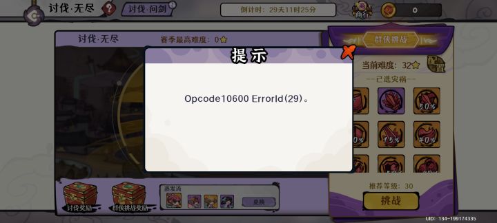 如图,攻擂刚打了两关就进不去了,退了游戏还是进不去,尽快处理啊