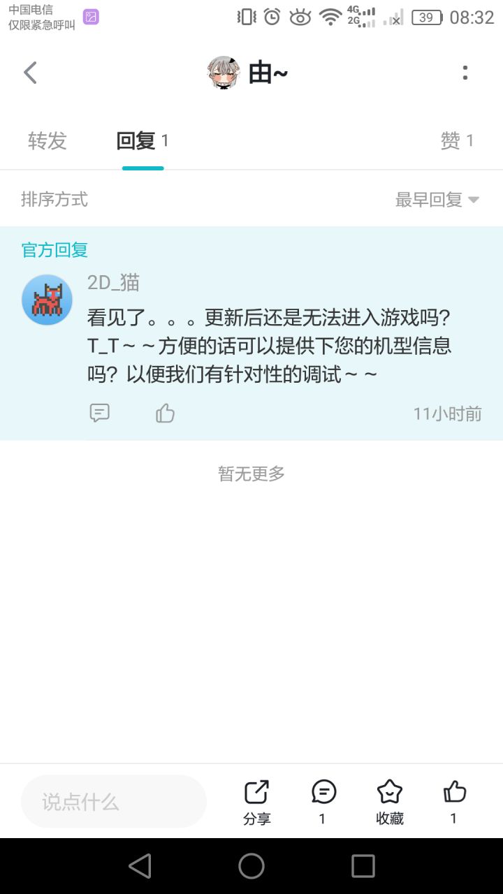 作者大大,您看到我了吗?我今天看见游戏更新于是更新了,我还是进不去😥😥大大,大大,您知道吗?我是真的想玩,大大,我等你!😭😭😭