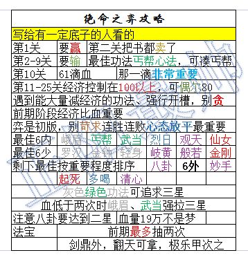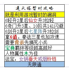 通用解法的意义就在于有预见性和针对性的凑齐相关法宝武将技能装备套,而后推图就无需多次尝试不同阵容了。可以安心囤五行精华升装备,买法宝碎片升法宝,以提升基本攻击血量。大致等同于提前准备八阶外功轩辕剑以毕业轮回塔。