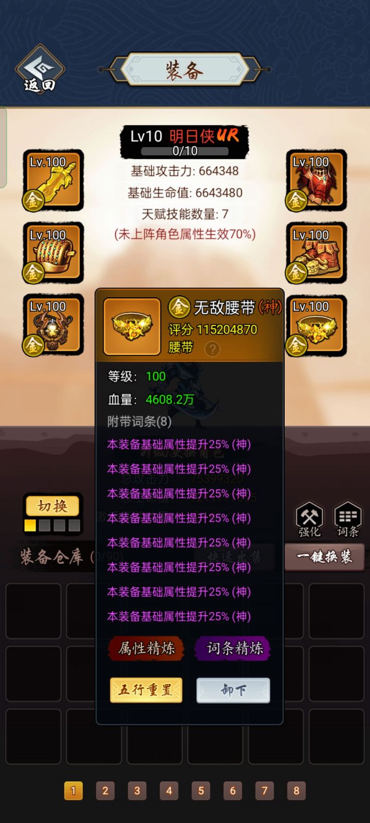 历时90天终于上阵四法宝位图是明日跟郭不带瓶子的战力和属性 事实证明明日不带瓶子3100+战力过110还是可行的