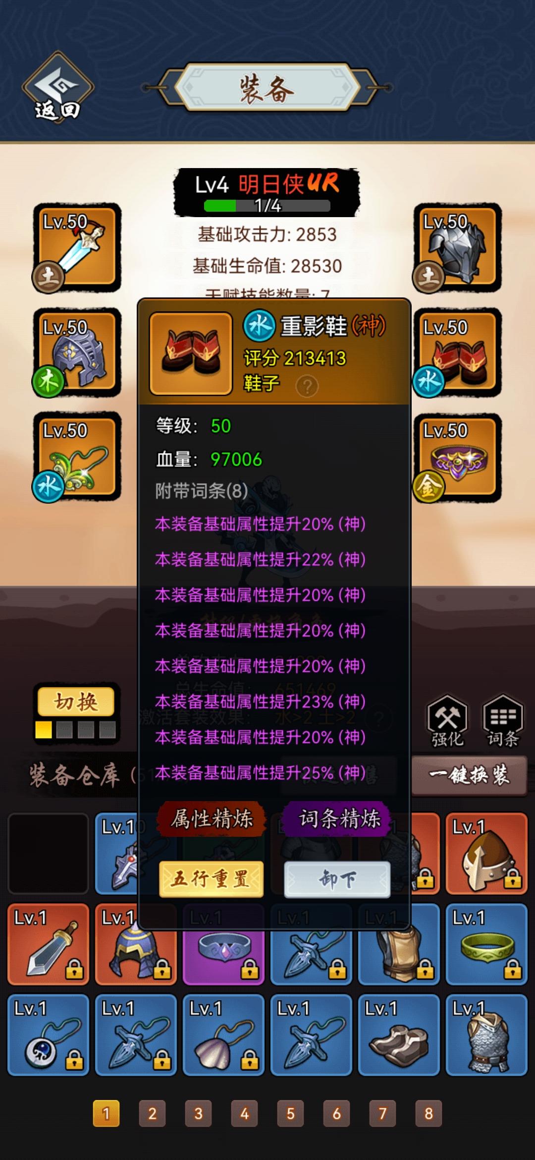 玩了6天,这是不是可以佛系养老了?4套已做完,太极4件也做好了,剩下就是精炼精炼词条,刷刷高属性,另外谁知道太极要精炼到多少?
