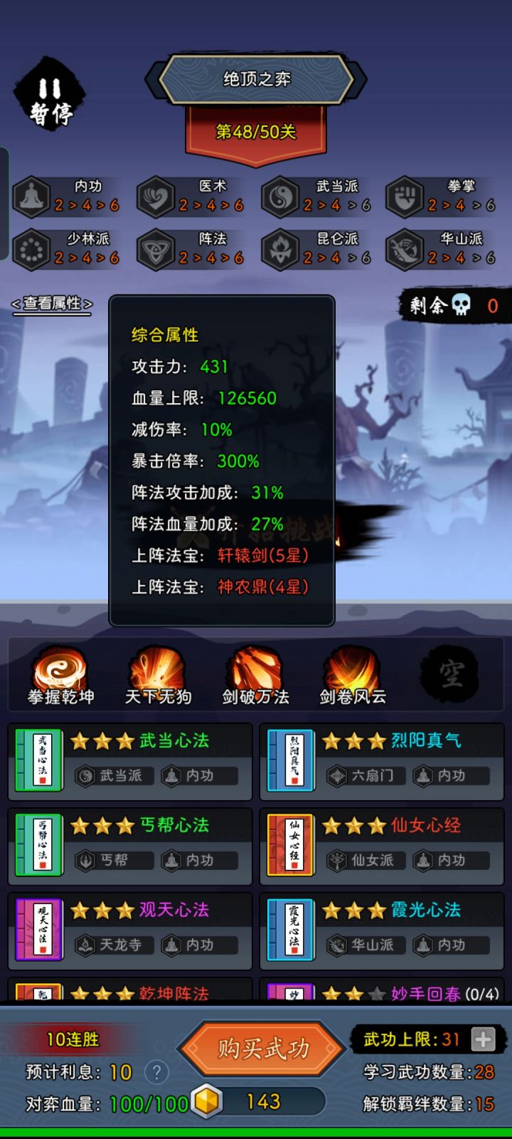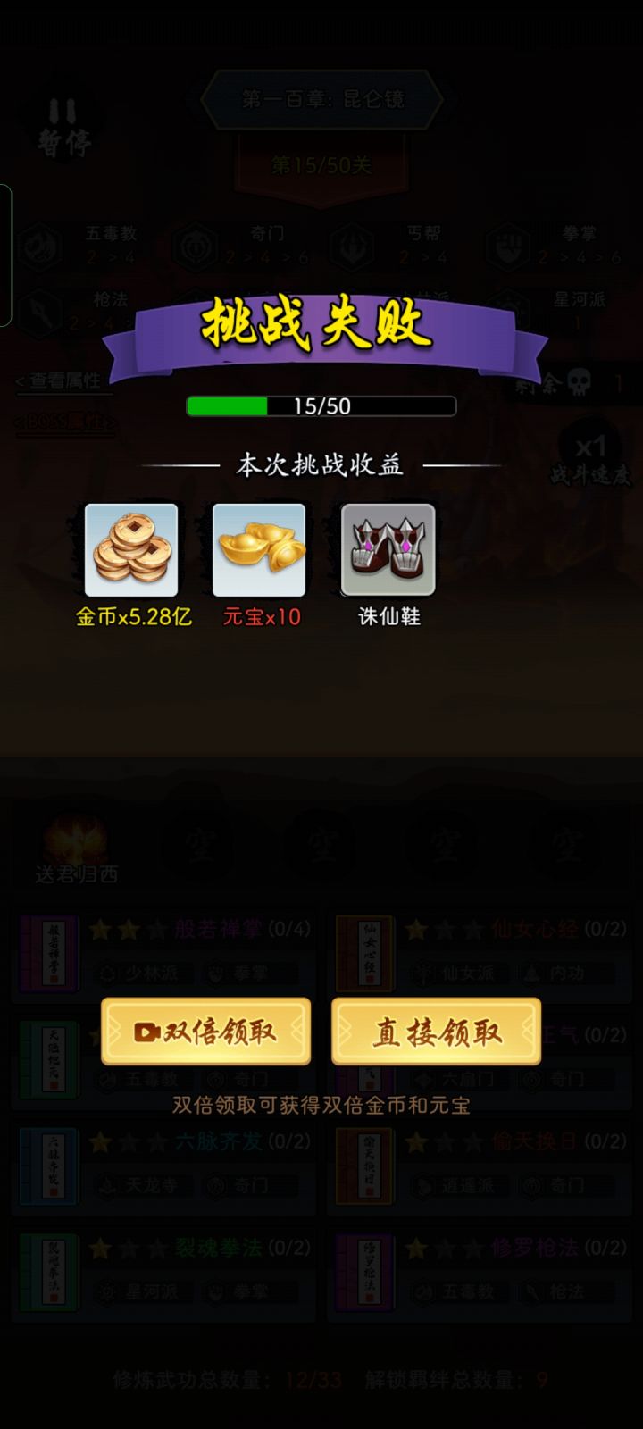 这次真的过不去了,昆仑拿枪,6枪4奇背杀boss3次都秒不了,看来得升功法才行了