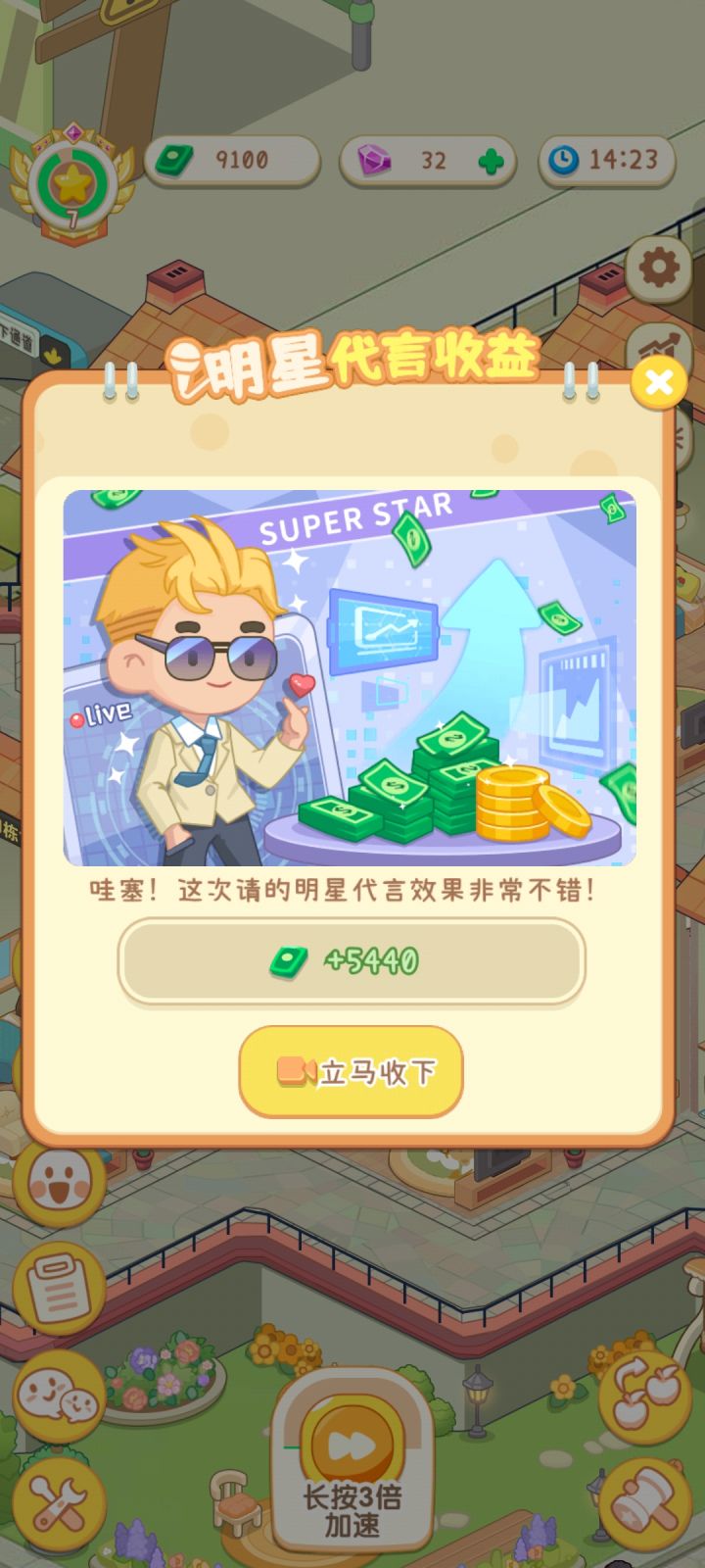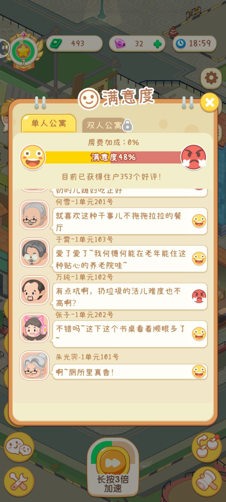 一上午光看广告去了,看了40.50次,还是不够用,升级要那么多钱!但是完成任务才1.200!!搞的我2单元都不敢招人,要不然全是差评!#养老模拟器