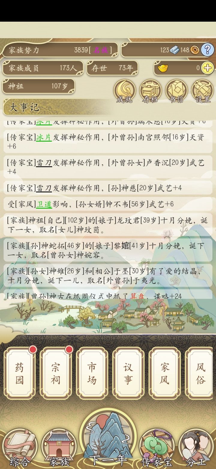 红娘馆之后的版本,可以通过放生“儿媳妇”,给已经年迈的儿子续弦,人为产出与族长百年以上年纪差距的继承人,超级家族养成变得很简单,留点天资药的话,轻松落地全红。