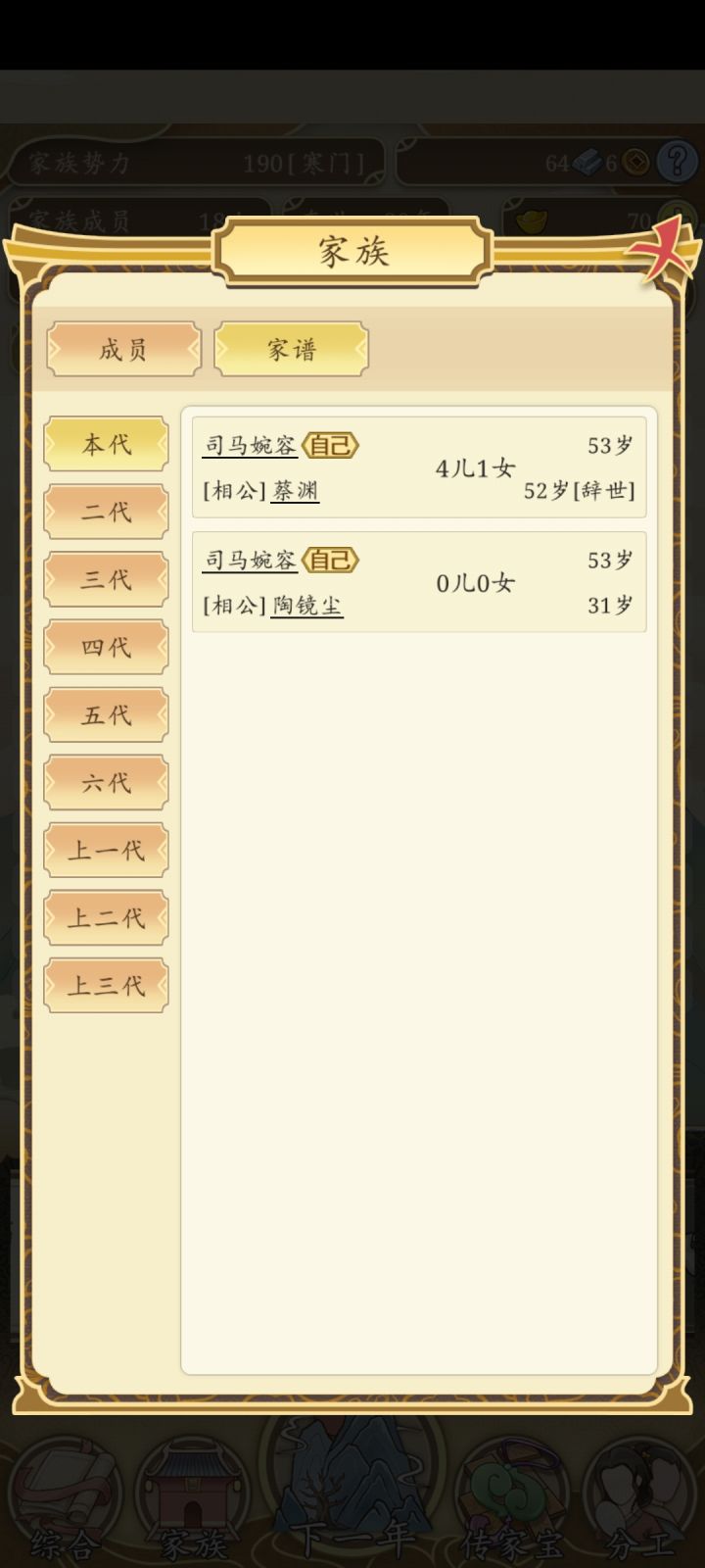 5.当这一代家主挂了无子嗣可以继承时可以安排一个亡族,然后再简单回顾一下家族历程和评价。😬