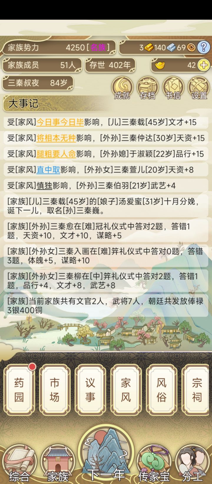 挺好玩的😁 提一些小建议! 1-希望可以手动生孩子,然后50岁以后就别生了吧! 2.希望可以帮自己婚配,儿子都40了还没介绍对象的,怎么整 3·成年以后就不要再学习了吧!能不能安排其他的工作类型,为他们安排职业 4·女儿嫁出去以后是不是可以不要管女婿的学习了,还有外孙的婚假,太乱了,看不清楚家族多少人了😂😂 5.下一代继承以后是不是应该显示同辈,兄弟姐妹一下消失了!可以不要后代,应该有同辈的记录!