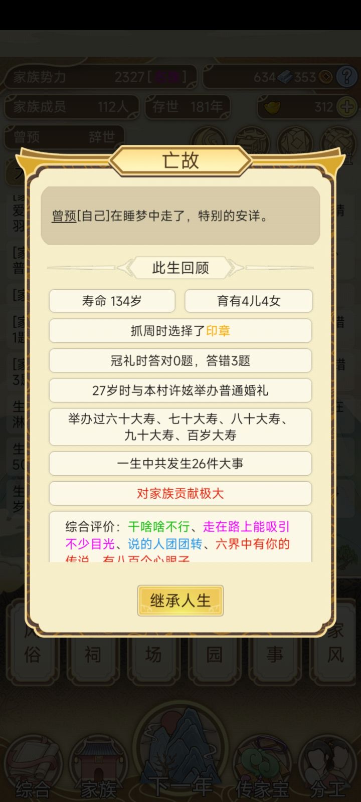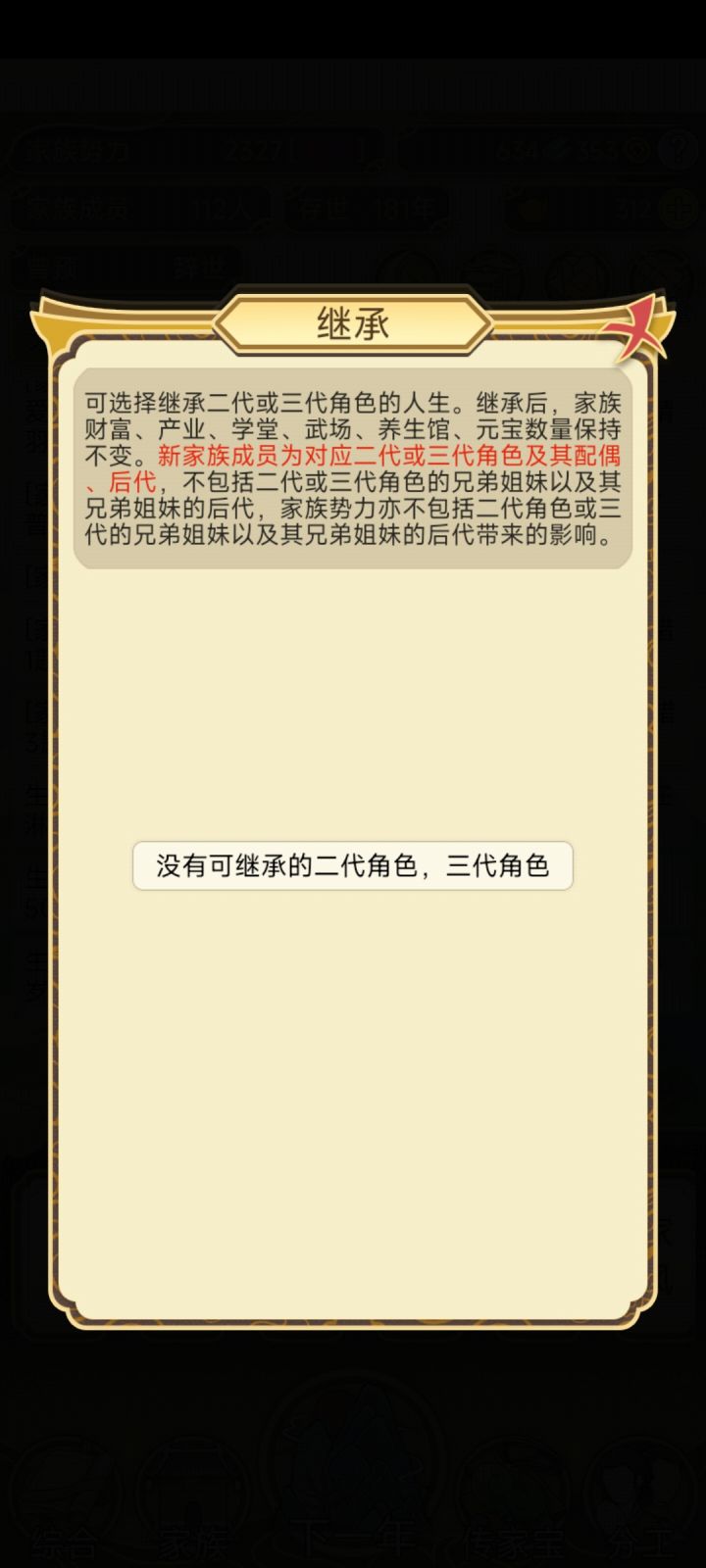增加手动选择性继承人多一些选择性,家族能建立王朝,要达到要求才能建立皇朝和帝朝,版图要大一些各朝国家越丰富越剧情多一些借鉴一下历史各朝事件,要政策制度,官职制度,要选择性要不要分家,希望作者可以借鉴各朝历史皇家制度,政策制度,文武百官制度体系家族达到一定要求建立国家,建立城池,建立军队,