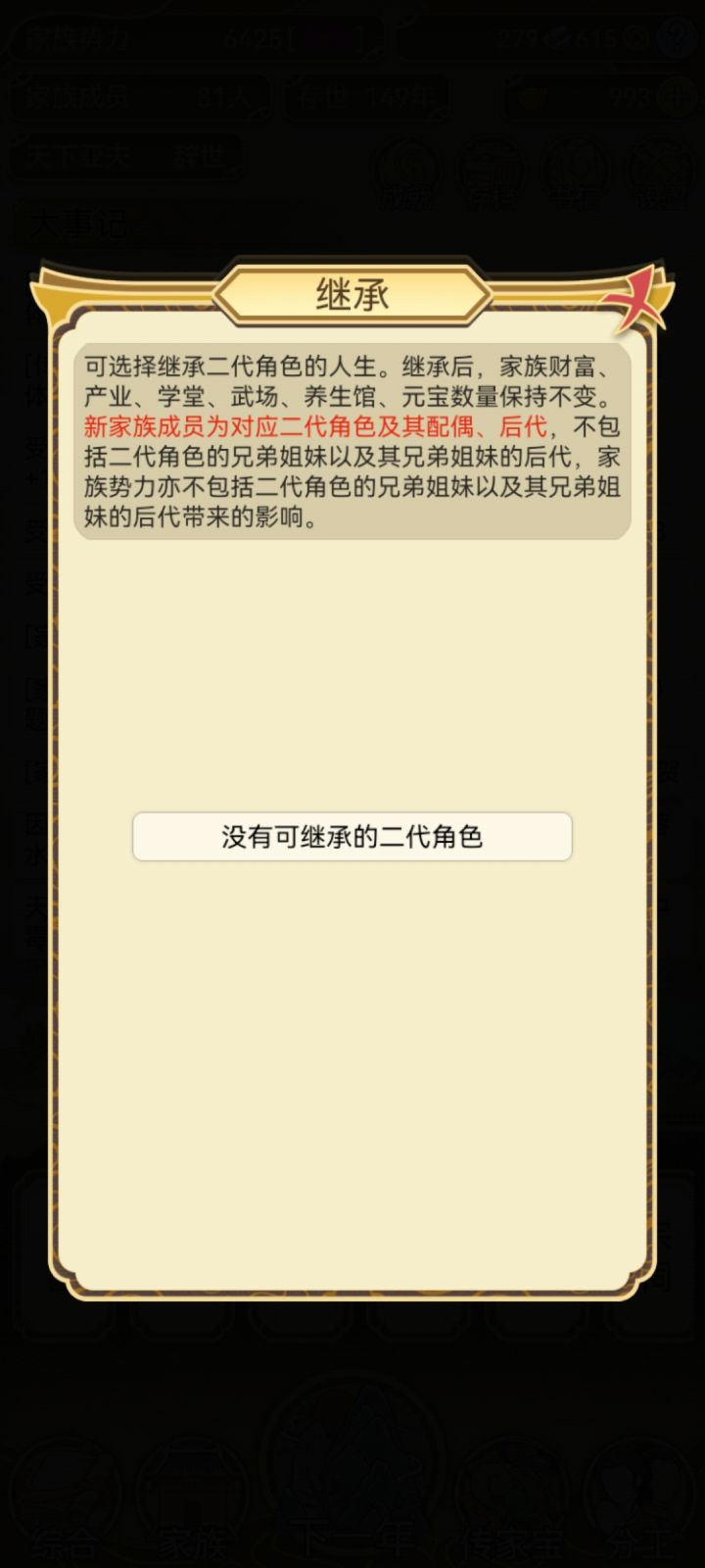能不能过继啊。没后代就完蛋了。。点错了人少的就挂了,活太久