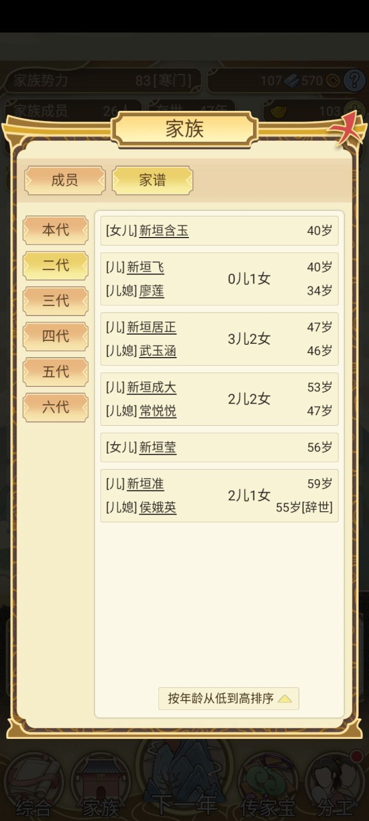 能不能改一下继承人的问题,为什么不能隔代继承,我第二代都死了,想继承都继承不了,还有当官,工资低不说,还要被抓去修长城,那我当官还有什么意义,而且分家可以,但为什么宗谱里人都没有了,总不能一分家人就不往来了吧,一分家我几十个人都没有了,这个家又要重新生孩子,很浪费时间的好嘛。还有婚姻,为什么只有那几个,不能我自主选择吗?而且过了岁数不选的话,就没有下文了,为什么不能拖个几年再结婚呢,非的只有那一次的选项,我想给孩子结婚斟酌一下人选都不行。希望官方能改进一下,谢谢~( ̄▽ ̄~)~