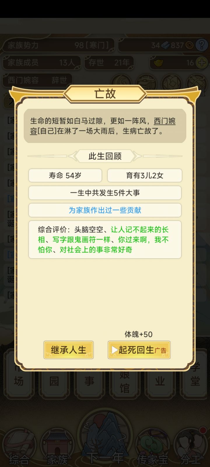 游戏内购让人不适 建议定低价买断制 中国端游的版权意识已经在提升了 手游玩家素质也再慢慢提高 只要定价低 口碑不错 不会愁卖不出去 人死了不看广告就没了 看广告立马复活还加50魂魄点 游戏平衡已经失衡 我想引用电影《让子弹飞》里张牧之的一句台词:“我不仅要站着 我还要站着把钱挣了” 我想说 游戏做好了 也可以挣钱 至少游戏的趣味性大体上很吸引我 只是我在游玩中发现一下问题:1 人物体魄点已经加到