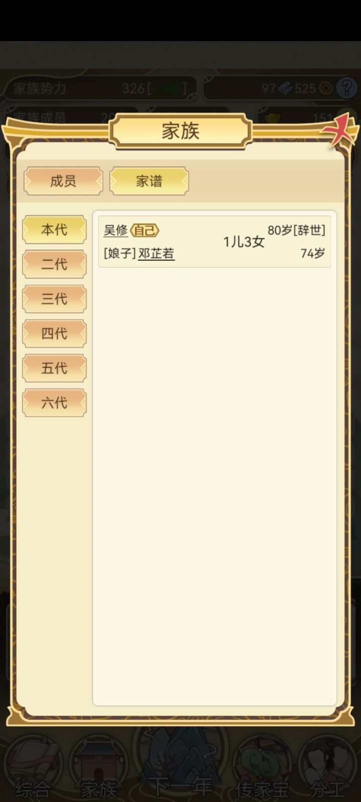 暂时玩到强族,其他挺好,就是说媒让我很难受,按道理来说我家族强大,说媒应该更容易才对(特别是对方属性和初始说媒时并没有什么出入),但是成功率只有10%左右了,你能想象我继承家族时要给自己50岁的单身儿子找老婆吗?就因为前面一直没说媒成功,家族成员越来越少。也别说用元宝请好的媒婆,第一 每天就那么点元宝,我宁愿用在结婚也不愿意用来说媒。