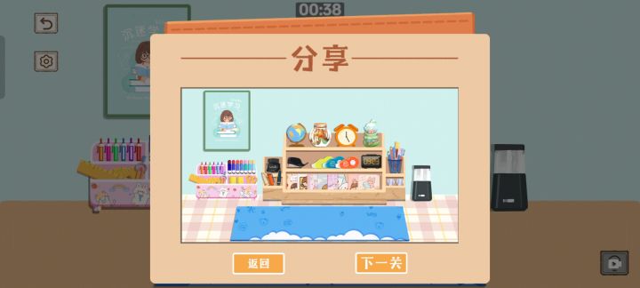 1.梦中情屋2.烟火人间3.书房寄语4.男友衣橱5.jk女孩6.每日优先①把“生”和“鲜”(拆成了两半)两个字牌挂上②清理屋内,扔垃圾③把货放在架子上,移动货物时会显示号码,有人要给或不给都可7.幸福抽屉8.美满床垫①下床垫②洗床垫③打扫房间,上床垫9.厨房抽屉10.超难收纳①冰箱外摆放②保鲜区摆放③冷藏区摆放11.有风民宿12.三室两厅13.温馨小屋1