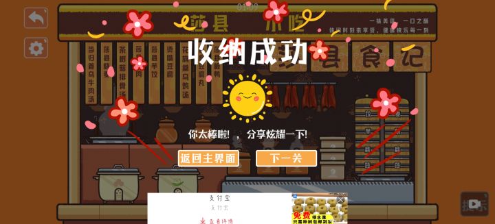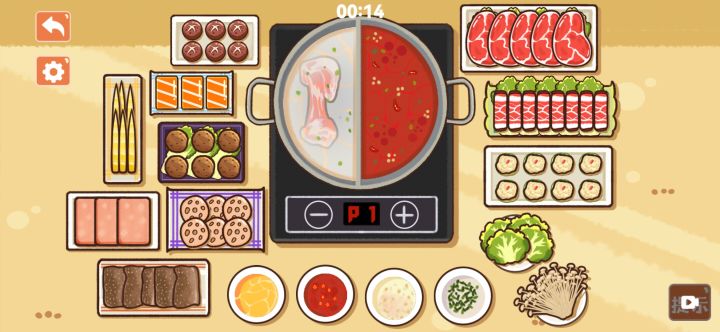 ——“来一份福建料理” tips ①右边的蒸笼要按字的顺序排,从下到上为莎县烧麦/芋饺 ②两个大锅和中间三个小锅,需要放满食材才可以盖上盖子 ③右边的铁锅需要放入左右两把勺 ④右边两个大锅,左边放鹌鹑蛋,右边放豆腐 ⑤美观考虑可以把上面的牌子,按照五短五长来排
