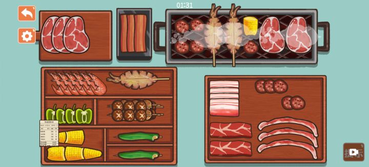 铁板烧把吃的放好,然后刷刷烧烤台,然后按照菜单放到烧烤架上就好啦