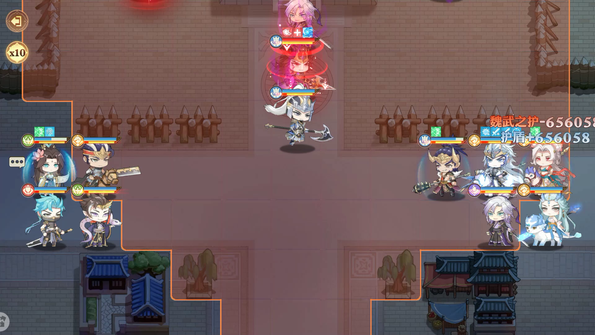 4.宛城密谋 推荐战力:24761040 过关思路:开局先打死左边的贾诩,进而打掉下面的张绣,注意阴阳屏障BUFF的敌军,稳步向上推进即可,伏兵会出现多次,集中走一起补充好状态,过关不是问题。 #游戏攻略 #英杰传群英演义