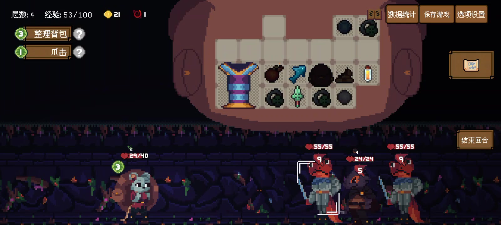 打鼠王被卡住了,应该被打死的可是没有反应,之后点武器还有回合结束都没有反应 #背包英雄
