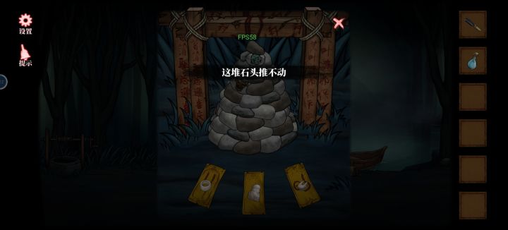 第一,不知道能点,放大镜是下面石头堆的第二,太小了,我手机已经比较大了,点这里还是几次才过,不知道点到了没有,交互成功的反馈又小的一批