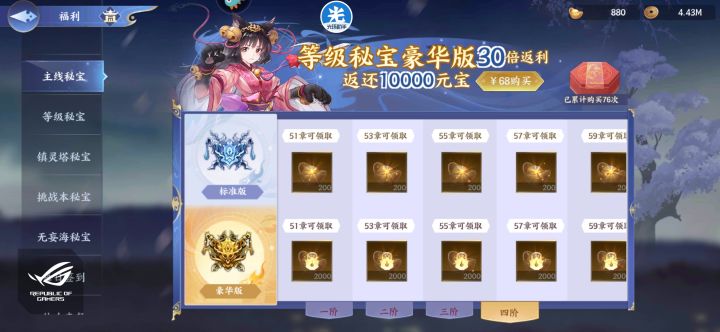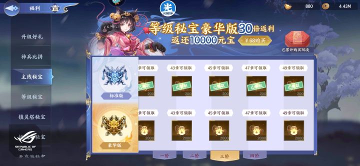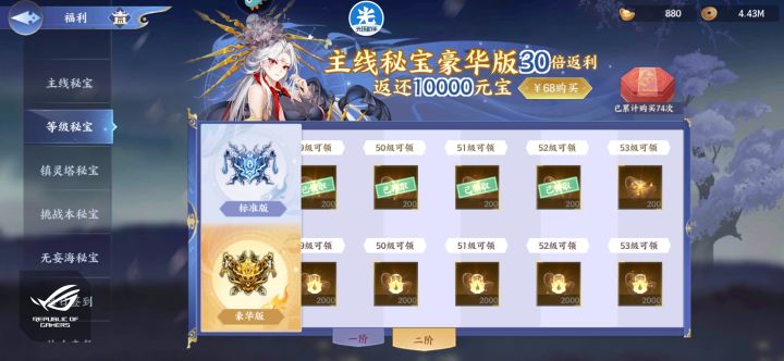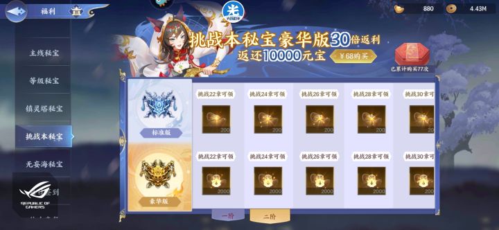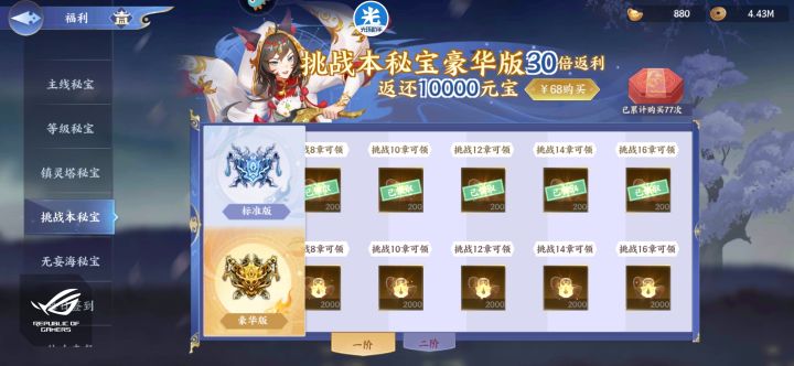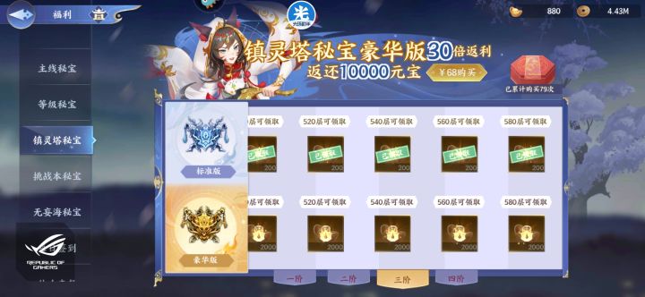 一个68爬塔 主线 等级各种,解一个68只能解一层,满满的氪金,画质不行就算,还升星玉限周购,注意绕坑,玩过这么久卡牌,不是不让你们回本,但这吃相难看,哪里都需要元宝,行会的元宝还要周一才领#游戏福利#游戏安利