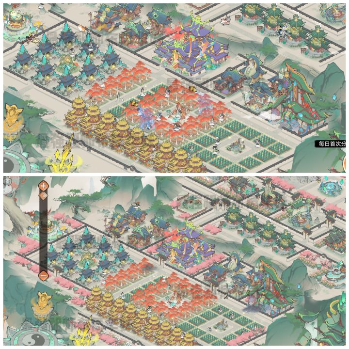 废话不多说,直接上设计图纸和布局效果图(之前的布局,请接着往下翻 )!上面为宗门主布局,主打四方围城的设计理念,九宫格宗门事物建筑将宗门大殿紧紧围绕,4个洞府隐藏在宗门之后,主打一个隐蔽。布局中的百合花圃,可以适当替换为其他颜色的花圃或者其他绿化建筑。上面为房舍布局,主打悠闲小院设计风格,仙居和绿化部分,请大家依自己喜好自行调整。上图为整体后山布局,除部分商店和房舍外,主打生产建筑布局。灵田