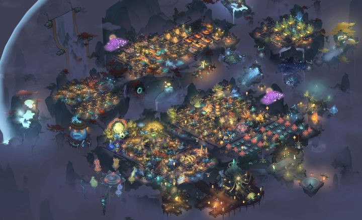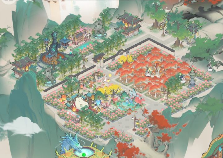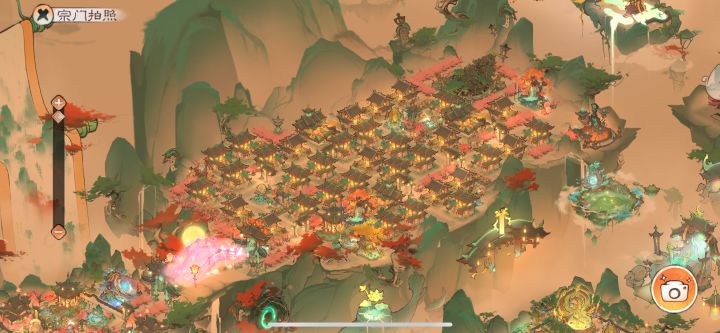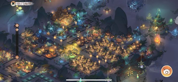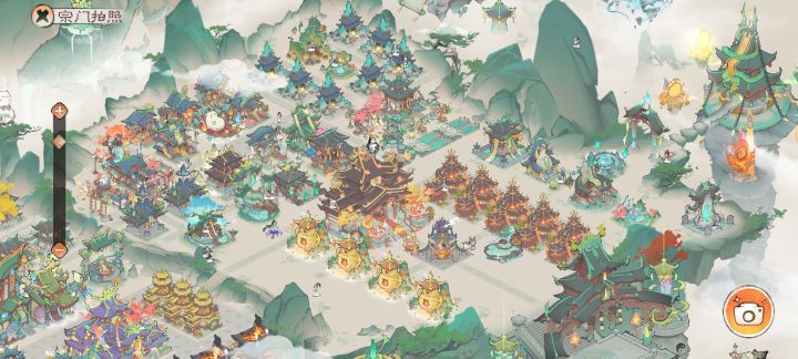 区服:凡人2区4服账号:oj7ggkps2600【在之前的基础上做了一下微调】【最后一张是拼了个全景,拍照的按钮和云去不掉😭】(官方什么时候能出一个截全景功能?)强迫症摆布局,主打一个分区鲜明密密麻麻*最中间还是功能区,所有宗门建筑都在这里,右边的空地是为了留给即将要出的新建筑*右边是生产区&商业街,是弟子们上班的地方,所有生产建筑都放在这,东北边还有带花园的“酒吧一条街”,谁会拒绝在