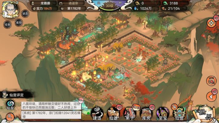 #仙宗共创 桃源仙宗 ——种田 打怪,逍遥仙门白云深处有人家,神仙本是凡人做!桃源仙踪!自在逍遥!建本道友心❤中最美宗门!账号:p6vbm3l0e300区服:仙魔之争4服昵称:龙霸霸主题名:桃源仙宗主要特色: 绿化工程好!格局分布合理!桃源仙境亦如此。本祖师劳心劳力,一砖一瓦建立的逍遥宗门,日升日落,每次玩游戏觉得赏心悦目,深感欣慰,每一处风景都值得。虽然 ,桃源仙宗不是最好最