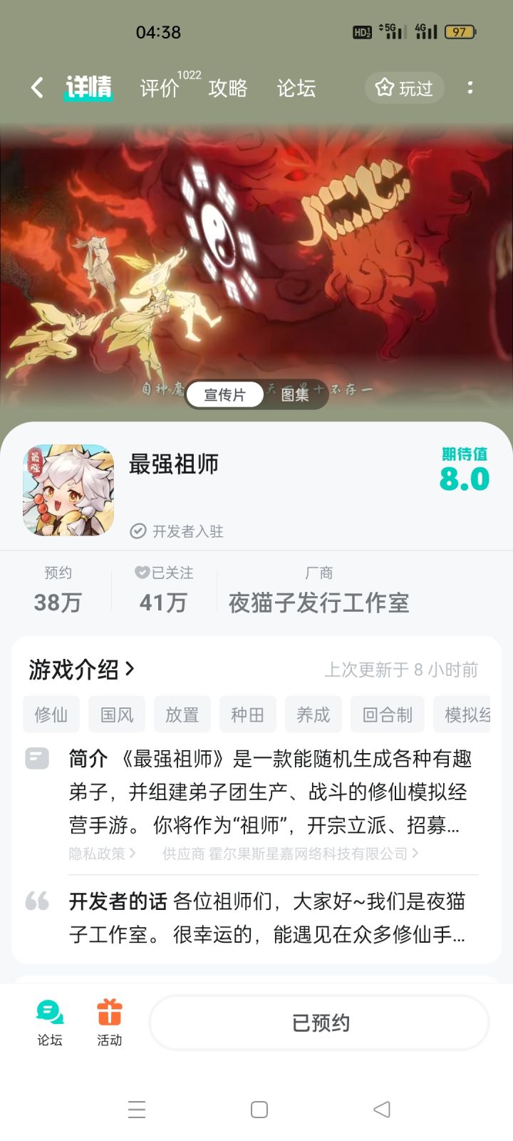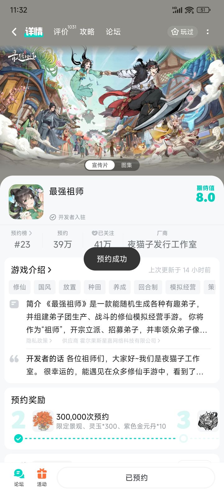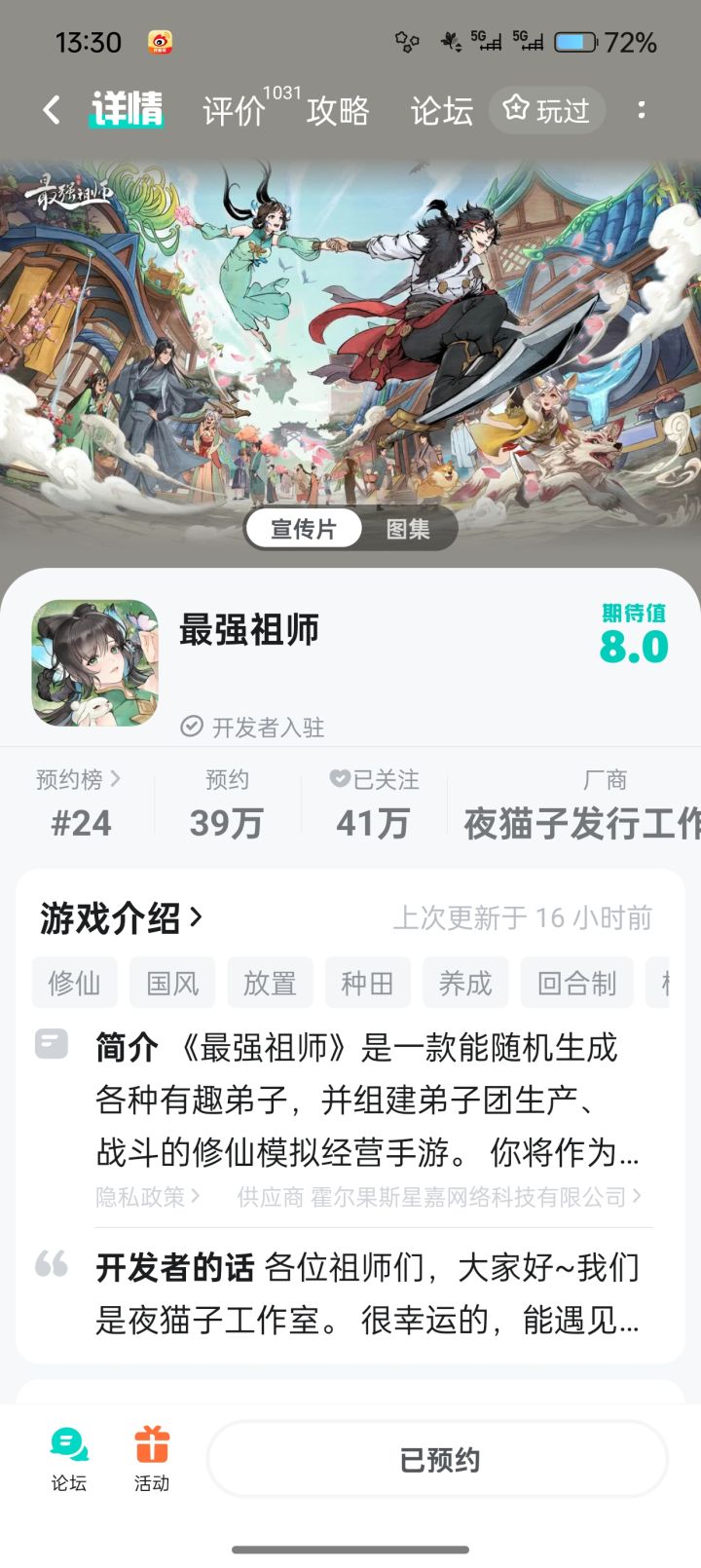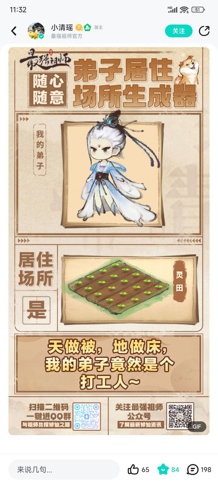 👉我的弟子我做主!修仙模拟经营手游《最强祖师》2月2日正式上线!✨各种预约活动已经开启,朋友们到官方论坛冲起来!🎮游戏特色1.弟子和宿舍多种多样,游戏中可以随机生成,我的弟子我做主!2.开宗立派、招募弟子,炼丹、炼器、符箓。3.山海异兽,小到一石一木,满屏古韵仙风,修仙氛围直接拉满!还没预约的朋友,赶紧预约一波!2024年2月2日,最强祖师,我们不见不散!#游戏种草计划#我的弟子我做主#游戏安利