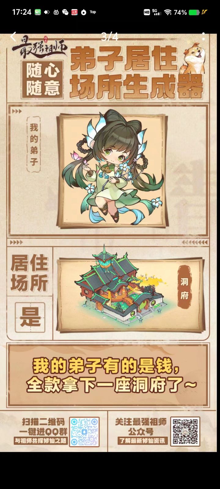 我的弟子我做主,修仙模拟经营手游《最强祖师》2月2日正式开启公测。⭐游戏预约活动已经开始,大家可以去官方社区那里看看,参与预约有机会赢取奖励。游戏特色:1、「万千弟子,随机生成」,所有弟子各怀特长、性格迥异。2、「宗门收徒,招纳奇才」,炼丹、炼器,篆渌各种玩法不断。3、「摸鱼修仙,兴建宗门」,弟子自动修炼,呵护祖师。#游戏种草计划#游戏安利#游戏推荐#我的弟子我做主#最强祖师