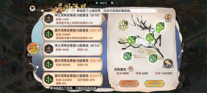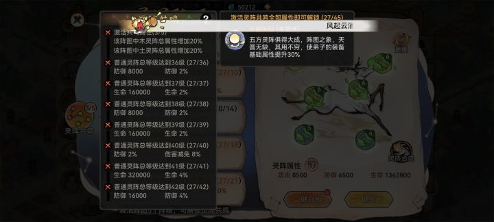 灵阵共鸣,到达一定等级,是会增加属性,那么如第一张图和第二张图所看,选的鹿阵,而鹿阵需要土和木,来凑齐属性,这一点可以看第三张图,那么如果不放这两个属性的灵阵,是否也会,产生共鸣,这点可以参考第一张图,答案是会的,第一张图放金和火还是鹿阵,共鸣等级也是有提升,那么,以苜蓿这个弟子来讲,是否可以放弃土属性全部炼化木属性的,因为苜蓿需要生命,而木属性生命加的比土属性多,或者说土属性根本不增加,生命只增