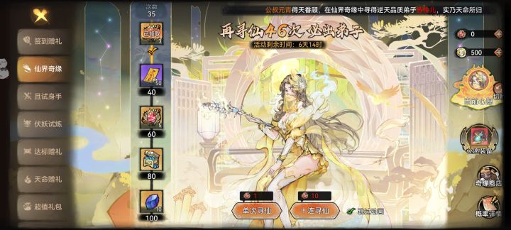 500寻仙令用了,抽的第子一个没有